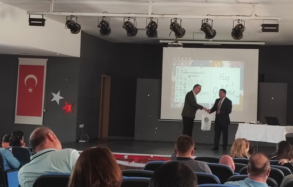 Öğretmenlerimiz için oldukça başarılı ve verimli olan seminer sonunda İlçe Millî Eğitim Müdürümüz Sayın Şenel BULUT kıymetli hocamız Prof. Dr. Haşim ÇAYIR'a seminerden duyduğu memnuniyeti ifade ederek hediye takdiminde bulundu ve seminere katılan öğretmenlerimize teşekkür etti.